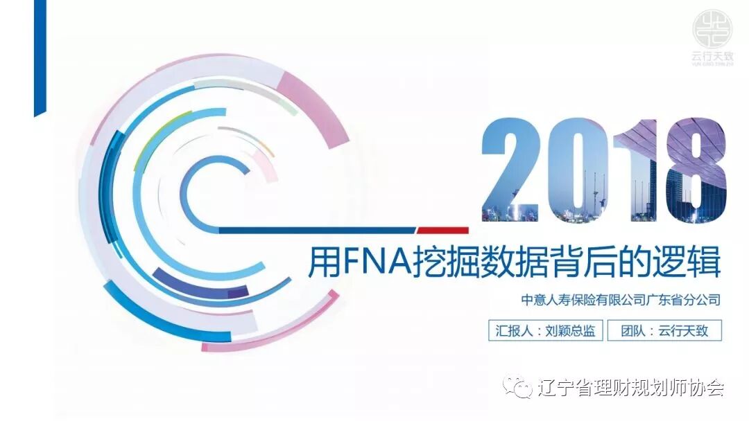 接下来的日子里,我开始了职涯的新思考。那段时间,大家都在关注保险行业的春天来了,于是我也偿试去接触。 话虽如此,在加入之前我也很纠结,人脉不广,没有经验的我,是否可以在这个行业有一定的收获?过往的传统的销售模式以及大众对保险从业人员的态度,让我对这个行业也非常没有信心。 机缘巧合下,在2014年11月,我加入了中意人寿TFE企业家计划。目的以培养综合理财服务专家而设立的针对高质量新人的培训项目。 时代在进步,我们如何可以通过更加科学合理的方法去取得我们想要的结果,去重塑大众对保险行业的固有观念,那今天,我在这里分享一下,我是如何做的。 估计有很多朋友会好奇说“你是如何做到三年晋升业务总监”? 那这是我在中意人寿的履历,我是在2014年的11月加入,是第十一期未来企业家(我们俗称的TFE)的学员。 同年12月,在公司的指引下,我参加了东方华尔的理财规划师的学习。在15年的4月我考取了中意人寿GCFP的资格,在2015年6月考取了国家高级理财规划师资格,当然这个有赖于东方华尔的优质培训体系和中意人寿TFE项目的栽培。在2016年,我跟我们云天的几位小伙伴组队参加了国家理财规划师大赛,通过专业的FNA的理财工具赢得了团体赛的季军。 那我们现在先来认识一下,我平时展业中利用的工具是什么?即,中意人寿的FNA系统。 今天的分享,会围绕四个点来进行。 第一,什么是FNA,第二,FNA系统它有什么作用,第三,通过收集客户的信息系统自动生成报告,然后给客户量身定做专属的报告方案,并配置保险组合产品以及财务规划的一些建议实施,最后一个环节是案例的分享。 下面我们进入第一个部分,什么是FNA? 中意人寿的FNA系统,是一款财务需求分析系统。 那通过它,可以直观、全面、专业分析并了解客户的财务状态和需求,并结合客户的具体情况,量身制作出符合客户需求的理财方案。 那FNA的使用目的是什么? 主要目的,是引起客户的兴趣。 因为,每一个人或者每个家庭的理财目标都是千差万别,哪怕你是一个高级财务或者是会计师、精算师,有时候无法清晰、明确的了解自家的家庭财务状态,那FNA可以通过客户繁杂的家庭财务数据。