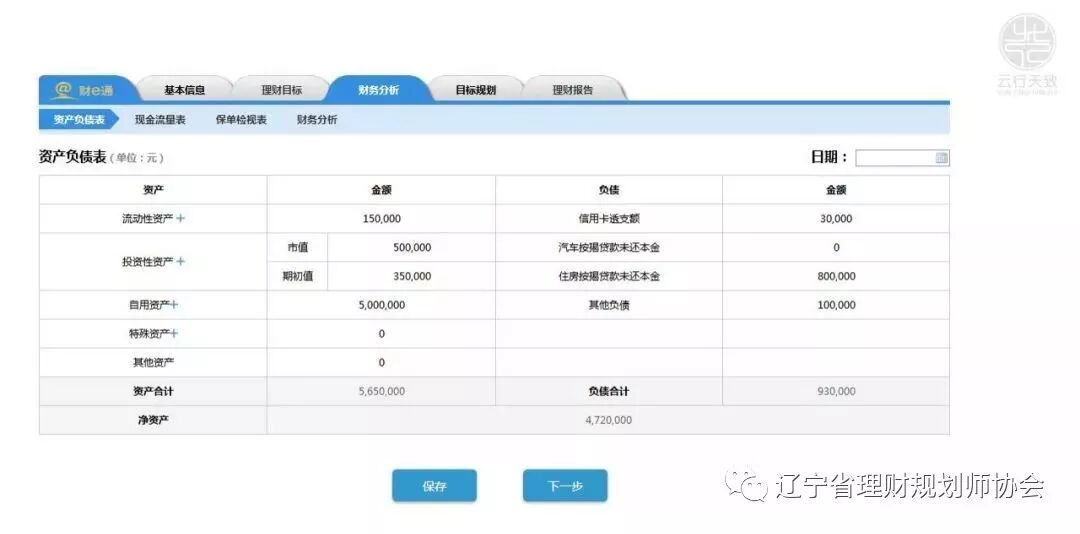 收集好上述的基本信息,我相信每个人都有了百分之五十的成功签单的几率。 接下来,我们跟客户去树立他的理财目标。那这大八大规划的理财目标,是因人而异的,要看客户首先需要关注的是什么,这方面需要很长的时间去跟他做更深入的交流。 例如:他最近有什么大额消费吗?譬如:投资板块、买房、买车,去帮他建立一个消费规划的安排。 那在养老规划方面,去获取客户希望在什么时间点退休的心愿,他预期的养老生活要持续多少年,可以通过交流,然后推算未来养老规划的安排,那在数据的呈现方面,更加直观,更加理性,科学合理的让他们预见未来,了解目前要去做什么样子的规划。 那在孩子的教育规划方面,和客户探讨小孩的年龄与给予的希望,希望孩子受到怎样的教育,跟客户畅想下孩子的未来。在这一方面,客户有做什么样子的打算或安排,在每一个规划的背后跟客户做一个深层次的交流。 保障规划方面,你会发现有些客户一点保障都没有,属于裸跑状态。 因为客户对保险的理解或者对这个金融工具的使用,完全属于不关注、不清楚、不了解的状态,可以从这个规划里深入地挖掘保障的功能跟意义。 我们会与客户沟通,家庭保障是为了去防范什么?我们的健康保障,是为了去弥补什么状态下的损失? 在投资规划板块,还是需要跟客户做深层次的交流,他们的投资渠道是什么,包括他们的收益状态,然后他们的配置状态。 如果说,客户在这个版块做了单一的投资,那我们作为理财规划师,我们的角色,应该以怎样的方式去提示客户做多方位、全面的资产配置,做怎样的投资规划。 当然,投资这个版块并不是我们的强项。所以,更多的时候,我们的专业在那一块就去帮助客户去解决哪一块的困扰跟担忧。 那在投资规划板块,只是做一个探讨或一个建设性的意见,并不会在整个报告里面做很强很强的意识。 最后是,我们的传承规划。 那传承可能很多的家庭没有去考虑的。那我们可以在这个规划之前,跟客户做进一步的交流。 在孩子出生的时候,本来就是一个传承行为,儿女以后的婚姻是否会影响我们打拼下来的财富,我们的财富是否可以安全有序的传承给自己的下一代,甚至第三代。那有做怎样一个预期或者打算,也跟客户去做一些交流,让客户在这个方面有一些启发,有些客户根本就没有想到这一块的需求。 好,我们通过这产负债表,现金流量表,我们可以观察到客户的流动资金去到怎样的状态。 在现金规划这个版块,可以跟客户去探讨,他为什么要去存储这么多流动资金,他背后的诉求是什么?那现金规划这一块,很多人可能会觉得说太过于标准化,那我们也是根据客户他的这个收入的是否稳定性,去做一个大致的评判,在现金规划的这个地方,我们也是伴随其他规划,统筹安排的。 最后,还要跟客户去讲税收筹划安排。 那税收筹划,目前除了赠与房产以及众说纷纭的遗产税,赠予税什么时候落地,客户有什么样子的应对措施或者是否知道?那这些税收上的一些规划,如果不合理的话,也会对现有的财富造成不必要的损失。 当所有的理念全部贯穿完成以后,其实这个报告,是没有办法当场跟客户去呈现的。 那所有的数据是在三个表格里面必须录入的。系统会根据我们理财规划的一些标准值,包括对客户的风险偏好做一些测算,会列出一个标准值出来,然后有八大比率。 因为我们属于保险公司,所以会在这个六大比例上多加了两个比例,一个是保障的覆盖率,一个是保费的合理度。