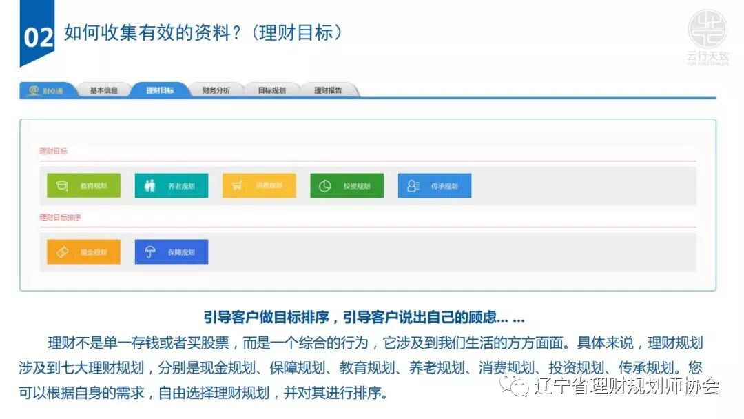 比如现金流、贷款等,去帮客户梳理家庭财务状态,唤醒客户财务管理的需求,帮助客户实现财务安全以及协助客户去追求财务自由。